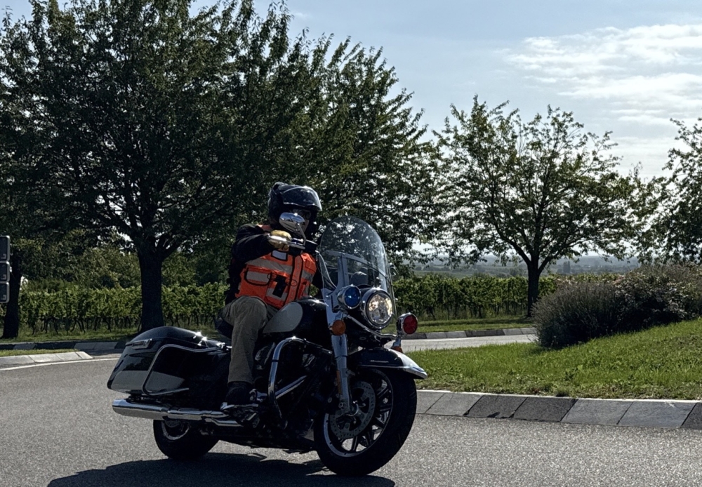 Wir starten frühmorgens am 17. August 2025 um 9:00 Uhr in Haßloch an der Shell-Tankstelle, die Sonne scheint, der Tag verspricht perfekt zu werden. Ein wunderschöner, sonniger Morgen begleitet uns, und wir lassen die Alltagssorgen hinter uns, während Headroadcaptain Rainer eine Tour zusammengestellt hat, die Kopf und Herz gleichermaßen erfreut. Unsere Route führt uns über Schweigen am Weintor, wo Frankreichs Charme in die Luft vibriert und die Vorfreude auf weitere Kurven wächst. Von dort aus geht die Fahrt weiter über Bitsch nach Eppenbrunn, eine geschmeidige Linie aus Kurven, Waldduft und guter Laune.